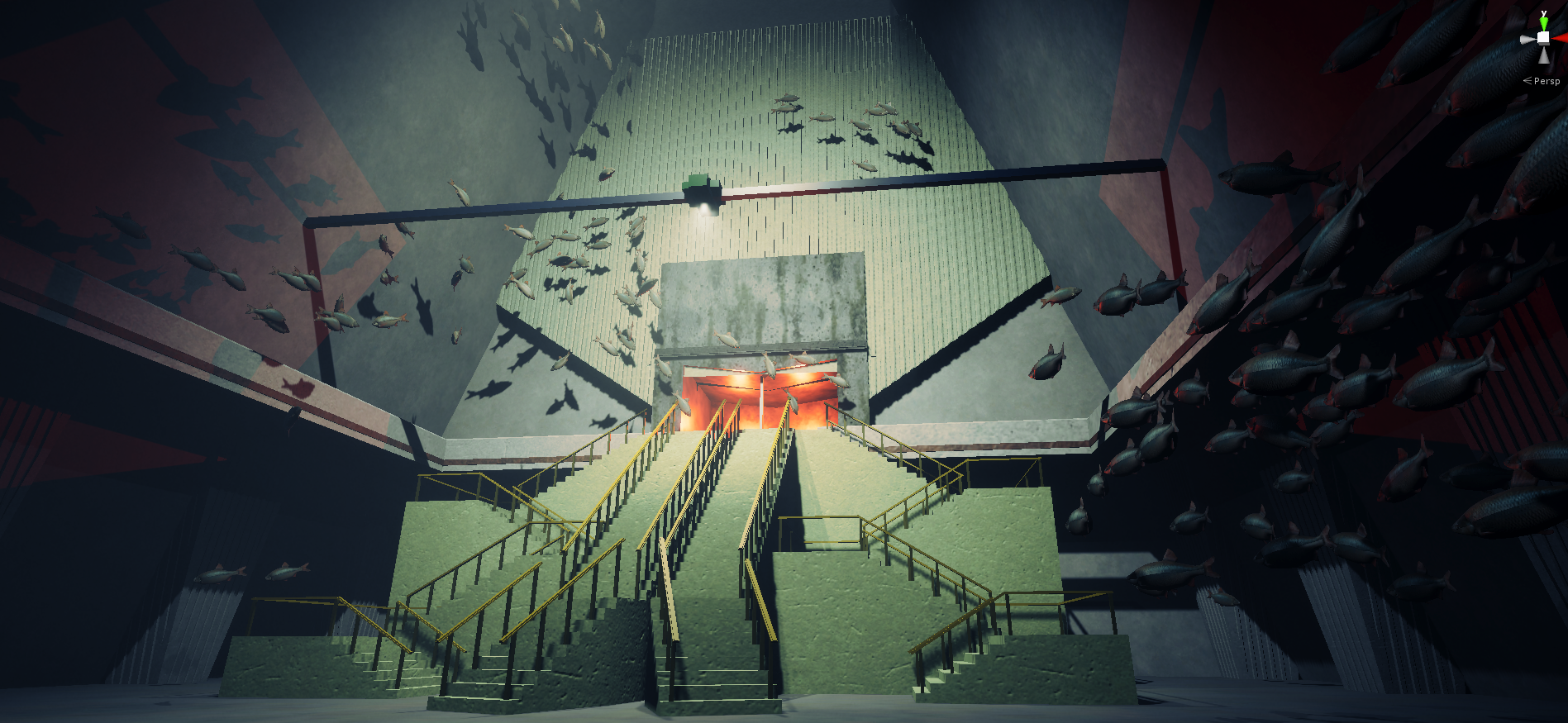 A first person animation made in Unity HDRP. The animation has a brutalistic and Lovecraftian theme and takes on the topic of powerlessness. It was created for the Game Visuals III module in game design at the ZHdK. the animation was recorded in the Unity HDRP, modeled in Cinema 4D, textured in Substance Painter and sound was designed in Reaper. The fish were animated with the shader graph.